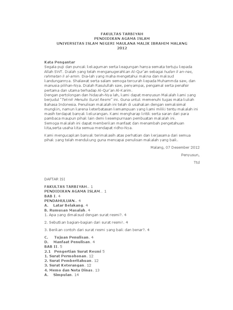 Tidak boleh dalam surat resmi penulisan tanggal tidak perlu didahului nama tempat atau kota karena nama itu telah tercantum pada kepala. Surat resmi adalah surat yang digunakan untuk berbagai keperluan resmi oleh sebuah instansi atau organisasi. Contoh surat resmi yang dibuat oleh individu adalah surat lamaran kerja, atau surat pengunduran diri dimana cara penulisan surat tersebut menggunakan format surat resmi yang berlaku dan bahasa yang digunakan merupakan bahasa indonesia yang baik dan benar. Dalam surat resmi juga perlu dicantumkan tanggal, bulan serta tahun penulisan surat. Bentuk ini mempunyai ciri yanitu bentuk penulisan yang semuanya dimulai dari sebelah kiri. Mungkin jika diantara kalian yang masih belum paham tentang surat resmi bisa kalian lihat contoh surat resmi dengan penulisan yang benar ada. Pemahaman menulis surat undangan resmi perlu dilakukan agar surat yang dibuat bisa sesuai dengan tata cara yang benar. Dari gambar di atas, kita tahu jumlah huruf di sisi. Harapan kami, penawaran ini dapat terwujud dalam bentuk kerjasama sehingga dapat. Nama dan alamat surat yang dikirimi tertulis pada bagian kiri. Dalam penulisan surat kata kepada berfungsi sebagai penghubung antara kalimat yang menyatakan arah sehingga tidak perlu lagi dituliskan jika penerima surat memiliki gelar akademik, ada baiknya menuliskan gelar tersebut dalam alamat surat tentu saja dengan penulisan yang baik dan benar. Contoh surat resmi sekolah harus ditulis dengan menggunakan bahasa yang sopan dan juga penulisan yang sesuai dengan ejaan yang disempurnakan. Meski di zaman sekarang penggunaan surat sudah mulai tergantikan oleh teknologi yang lebih modern, surat resmi masih tetap dibutuhkan untuk kegiatan yang bersifat formal.